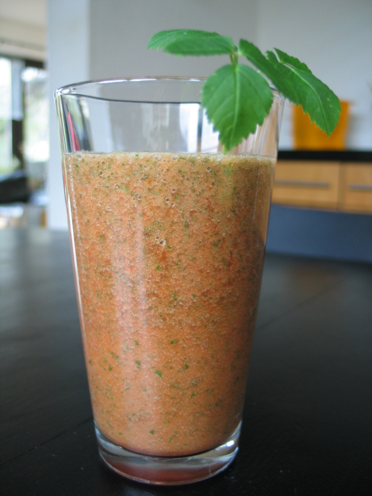 Der Tag heute war mal wieder äußerst kohlenhydratreich. Zeit noch was gemüsiges nachzuschieben. Also, ab in den Garten, die letzten schönen Blätter Brennnessel, Zitronenmelisse und Giersch pflücken und ab in den Mixer. Gemüsesaft dazu. Fertig ist der Bloody Nettle – dachte ich zumindest, aber dieser Mix war eher creamy als bloody.